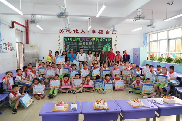 陳書記一行走進(jìn)香暉園小學(xué)一(1)班教室,和孩子們共同慶?!傲弧眱和?jié)。剛到課室門口,“叔叔阿姨們好!”——孩子們熱情的問好聲便響了起來。陳書記從疫情期間的生活和學(xué)習(xí),以及復(fù)學(xué)后的心情和學(xué)習(xí)狀態(tài)等方面親切慰問了孩子們,孩子們積極回答,熱情回應(yīng)。在班主任黃楚祺老師的帶領(lǐng)下,全體一(1)班的小朋友共同表演手勢(shì)舞《你笑起來真好看》,孩子們精彩的表演博得了叔叔阿姨們的陣陣掌聲。陳書記與孩子們一同切蛋糕,并派發(fā)禮物,致以節(jié)日的祝福,鼓勵(lì)孩子們要從小樹立遠(yuǎn)大理想,向與時(shí)間賽跑、與病魔較量的抗疫英雄、最美逆行者學(xué)習(xí),珍惜來之不易的美好生活,勤奮學(xué)習(xí),提高本領(lǐng),打好基礎(chǔ),培養(yǎng)高尚品德,“德智體美勞”均衡發(fā)展,長(zhǎng)大后做一個(gè)對(duì)社會(huì)有用的人。同時(shí),在特殊時(shí)期注意做好自我防護(hù),注重加強(qiáng)體育鍛煉,以健康的身體素質(zhì)和良好的精神狀態(tài)快樂學(xué)習(xí)成長(zhǎng)。
