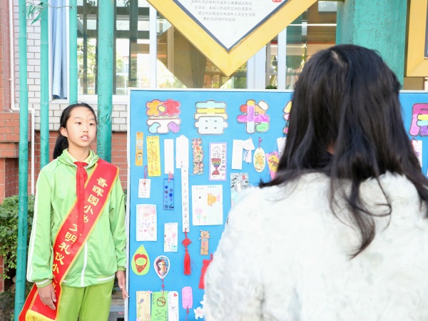 檢查組在該校一樓長(zhǎng)廊參觀了學(xué)校禁毒教育成果展,現(xiàn)場(chǎng)展示的作品有禁毒手抄報(bào)、禁毒書(shū)畫(huà)作品、禁毒創(chuàng)意作品等,每個(gè)展板前均有一名少先隊(duì)隊(duì)干負(fù)責(zé)講解。小講解員們細(xì)致地向檢查組講解了各項(xiàng)活動(dòng)的開(kāi)展情況及成果。隨后,檢查組到三樓圖書(shū)館參觀,陳澤湖校長(zhǎng)匯報(bào)了圖書(shū)館的建設(shè)和使用情況,并特別展示了禁毒教育相關(guān)書(shū)籍及相關(guān)硬件設(shè)備。接著,檢查組一行落座四樓會(huì)議室,聽(tīng)取該校以《手拉手遠(yuǎn)離毒品,齊參與共筑防毒長(zhǎng)城》為主題的工作匯報(bào),陳肖影副校長(zhǎng)從有保障、有特色、有成果三方面展開(kāi)詳細(xì)匯報(bào),介紹了學(xué)?!岸嘀Ы逃?duì)伍齊發(fā)力”的禁毒教育師資建設(shè)、豐富多彩的禁毒活動(dòng)及“師生家長(zhǎng)同受益”的禁毒教育成果。