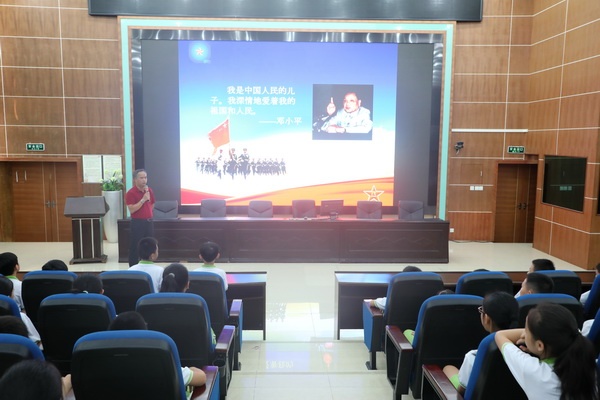陳校長以鄧小平的一句話“我是中國人民的兒子,我深情地愛著我的祖國和人民”作為引入,向全體學(xué)生提出“弘揚愛國主義思想,做新時代有為青少年”的希望和要求。他從“了解我的祖國”、“為什么要愛國”、“在日常學(xué)習(xí)和生活中,我們小學(xué)生該如何愛國”等三個方面引導(dǎo)學(xué)生思考如何從優(yōu)秀榜樣的精神品格中汲取力量、思考如何度過有意義的學(xué)習(xí)生活,勇?lián)鷷r代使命等。陳校長講道,回望歷史,中華兒女歷來抱有振興民族家國情懷,有自強不息、艱苦奮斗的拼搏精神,有探求真理、好學(xué)力行的實踐精神。當前,實現(xiàn)中華民族偉大復(fù)興的中國夢是時代“最強音”,希望同學(xué)們學(xué)會感恩,感恩父母、感恩老師、感恩祖國、感恩現(xiàn)有的生活,要有家國情懷的境界、艱苦奮斗的作風(fēng)、學(xué)以致用的目標、崇善尚美的心態(tài)。