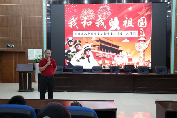 9月12日下午,開發(fā)區(qū)香暉園小學(xué)黨支部書記、校長陳澤湖在學(xué)校報告廳為該校五年級全體學(xué)生講授題為“我和我的祖國”的本學(xué)期第一堂思想政治教育課。