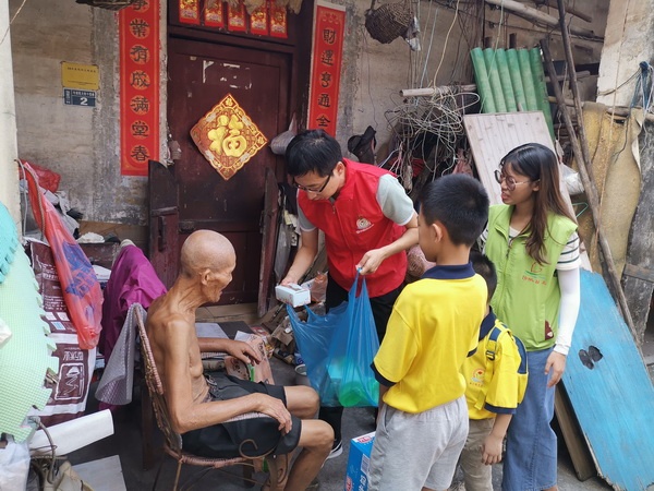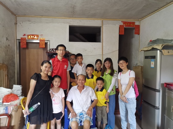 制作好月餅后,校親子義工家庭分成三組,去探望張家邊、海濱、聯(lián)富三個(gè)社區(qū)的十幾戶孤寡老人。在社區(qū)社工的帶領(lǐng)下,香暉園小學(xué)親子義工家庭的老師、家長和孩子們帶著剛剛做好的月餅和一些生活用品看望了孤寡老人,為老人們送去了節(jié)日的溫暖和祝福。
