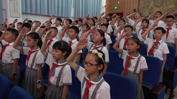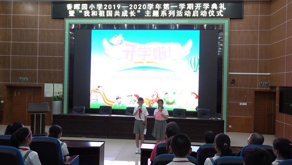恰逢臺風“玲玲”來臨,一場別開生面的開學典禮移師學校報告廳如期舉行。五年級全體師生作為代表,現(xiàn)場參加了此次2019-2020學年第一學期開學典禮暨“我和祖國共成長”主題系列活動啟動儀式,其余年級在班級課室收看央視《開學第一課》并開展主題班會課活動。