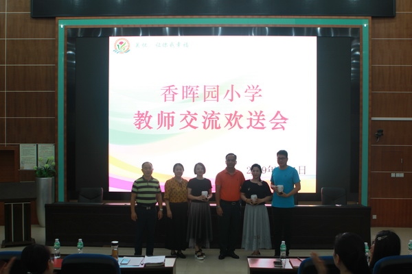 會議首先以一場簡單而又溫馨的教師歡送會拉開序幕,黃大英、周園園和宋月紅三位因交流輪崗而調(diào)離香暉園小學(xué)的老師分別上臺發(fā)表感言。三位老師回顧在香小的工作生活,難忘點滴,飽含了不舍與感恩。該校陳澤湖校長、劉裕副校長及陳虹崗副校長代表學(xué)校給三位老師贈送紀(jì)念品。