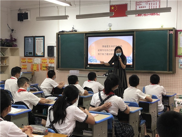 在上午第一節(jié)和第二節(jié)的課堂上,各班班主任老師和學(xué)生們親切交談,積極營造輕松和諧的班級氛圍,結(jié)合學(xué)校新制定的疫情期間學(xué)生一日常規(guī),教給學(xué)生科學(xué)防疫的方法,還將安全、愛國、心理健康、生命教育等內(nèi)容進行融合,通過圖片、視頻、故事等形式深入淺出地進行教育,引導(dǎo)學(xué)生積極迎變,提升心理彈性,提高對生命的敬畏和珍惜。