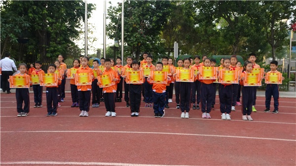 11月25日上午,開(kāi)發(fā)區(qū)中心小學(xué)利用升旗儀式,舉行了田徑運(yùn)動(dòng)會(huì)的頒獎(jiǎng)儀式,開(kāi)發(fā)區(qū)中心小學(xué)校長(zhǎng)劉剛毅、副校長(zhǎng)楊異偉為本次運(yùn)動(dòng)會(huì)的獲獎(jiǎng)班級(jí)頒獎(jiǎng),并表示祝賀。通過(guò)運(yùn)動(dòng)場(chǎng)上的較量,不但促進(jìn)了學(xué)校體育運(yùn)動(dòng)的發(fā)展,增強(qiáng)了學(xué)生體質(zhì),增強(qiáng)了學(xué)生的集體榮譽(yù)感和班級(jí)的凝聚力,同時(shí)也激勵(lì)著學(xué)校繼續(xù)沿著素質(zhì)教育之路,為培養(yǎng)更多全面發(fā)展的人才而努力!