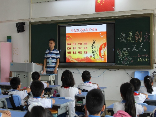 班會(huì)課上,各班主任借助課件和動(dòng)畫短片,深入淺出地向?qū)W生們闡述了什么是社會(huì)主義核心價(jià)值觀體系;并結(jié)合身邊事例向?qū)W生們講授了“富強(qiáng)、民主、文明、和諧、自由、平等、公正、法治、愛國、敬業(yè)、誠信、友善”24字的深刻意義。部分班級(jí)還結(jié)合近期校園內(nèi)外發(fā)生的事例,采取小組討論、辯論比賽等形式,引導(dǎo)學(xué)生關(guān)注自己平時(shí)的行為,從自身的行為習(xí)慣做起,從身邊的小事做起,真正做到“講文明,守公德”,爭做創(chuàng)文小主人。