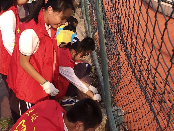 開發(fā)區(qū)一中志愿者服務(wù)隊(duì)的同學(xué)們利用周末的時(shí)間,在胡筱鴻副校長的帶領(lǐng)下,與健康花城社區(qū)的工作人員一起進(jìn)行了衛(wèi)生清理工作。黨員教師黃輝梅則帶著學(xué)生志愿者,從開發(fā)區(qū)一中北門出發(fā),撿拾學(xué)?;@球場、塑膠跑道、足球場及看臺(tái)上的垃圾。教師黨員志愿者們則兵分兩路,分別從正、西門出發(fā),沿著學(xué)校圍墻外側(cè)人行道,清理沿途墻角和綠化帶里的碎紙、膠袋、包裝盒、舊瓶子等雜物。他們不放過一處死角,清理掉沿途的垃圾。路過的群眾、鍛煉身體的人們、社區(qū)的業(yè)主紛紛為他們的行動(dòng)點(diǎn)贊。