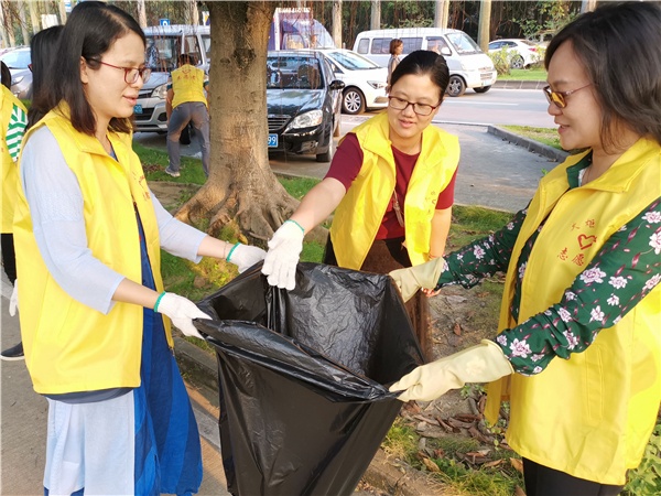 師生志愿者們用辛勤的汗水為社區(qū)、校內(nèi)外清潔工作做出貢獻(xiàn),為扮靚校園迎接新中國成立七十周年做了實(shí)事好事。他們的行動(dòng)推進(jìn)了人居環(huán)境整治工作,進(jìn)一步優(yōu)化美化火炬區(qū)的人居環(huán)境。那一群“黃馬甲”“紅馬甲”,是世紀(jì)一路、開發(fā)區(qū)全民健身廣場、健康花城社區(qū)里最美的風(fēng)景。