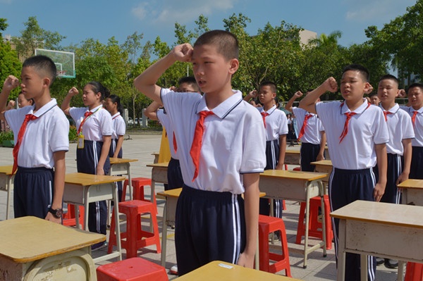 在初一(1)班莫藝凡同學帶領下,全級同學齊誦《自主教育賦》。接著宣誓《成長誓詞》,“成人是我自己的事,成才是我自己的事。自治、自學、自評,對自己的行為負責。今天有理想、負責任,未來有擔當、有作為”的誓言響徹云霄,拉開此次結營儀式的序幕。