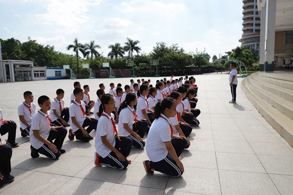 擔任本次隊列表演的評委,均是初二年級班干。五天集訓,由初一年級班主任、體育老師,以及初二年級遴選的班干擔任“教官”。初二年級34名班干,作為初一新生的小導師,主要向師弟師妹們講解《自主教育手冊》的“小職務,大舞臺”、一日常規(guī)、樓道管理等自治管理與評價、值日班長培訓、學習宣誓和總結等內容。