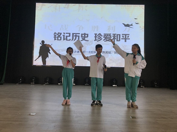 在氣勢軒昂的宣誓后,初一8班三位小演講者開始“勿忘國恥,振興中華”的演講。又是一年“九一八”,時間過去了整整88年,侵華日軍所犯下的罪行無法被時間抹去,中華民族的心靈創(chuàng)傷永不能安撫!華夏兒女必須要清楚牢記:銘記歷史,勿忘國殤。1931年9月18日,日本帝國主義發(fā)動了蓄謀已久的侵華戰(zhàn)爭,東北三省淪為日本帝國主義的殖民地,約三千萬中華兒女慘遭涂炭,陷于水深火熱之中。 中華民族經(jīng)歷過太多挫折才走到今天這一步,而我們——祖國未來的希望與棟梁,是要以自己的努力換取華夏民族在世界上的發(fā)言權(quán)!“讓中國站起來,立穩(wěn)足跟?!边@是我們努力的源頭與方向,重任擔(dān)在我們肩頭,唯有不斷超越自己努力學(xué)習(xí),將華夏兒女積極向上,朝氣蓬勃的精神完全散發(fā)出來,才能早日實現(xiàn)中華民族偉大復(fù)興。
