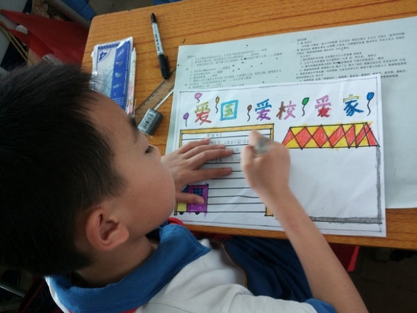 各中隊在中隊輔導(dǎo)員的主持下,利用隊活課時間開展愛國主義活動。各中隊輔導(dǎo)員首先向?qū)W生詳細闡述了社會主義核心價值觀的主要內(nèi)容及深刻涵義,教育學(xué)生在成才的過程中,要養(yǎng)成良好的道德行為規(guī)范,既要做中華傳統(tǒng)美德的傳承者,也要做社會主義核心價值觀的踐行者,從小做積極向上的好學(xué)生、好孩子,長大后成為有擔(dān)當(dāng)、有責(zé)任感的好公民。接著,各中隊根據(jù)德育處下發(fā)的活動安排,組織學(xué)生開展了相應(yīng)的活動。低年級組學(xué)生運用各色的畫筆描繪出爭做積極向上的好學(xué)生的愿望;中年級組采取手抄報形式希望自己長大后成為有擔(dān)當(dāng)、有責(zé)任感的好公民;高年級組利用濃郁的筆墨書寫出要做中華傳統(tǒng)美德的傳承者。學(xué)生們積極完成自己的作品,暢談自己對社會主義核心價值觀的認識,表示要從平時的一點一滴做起,用實際行動來踐行社會主義核心價值觀,并在6月29日上交作品,德育處根據(jù)學(xué)生作品進行評獎。