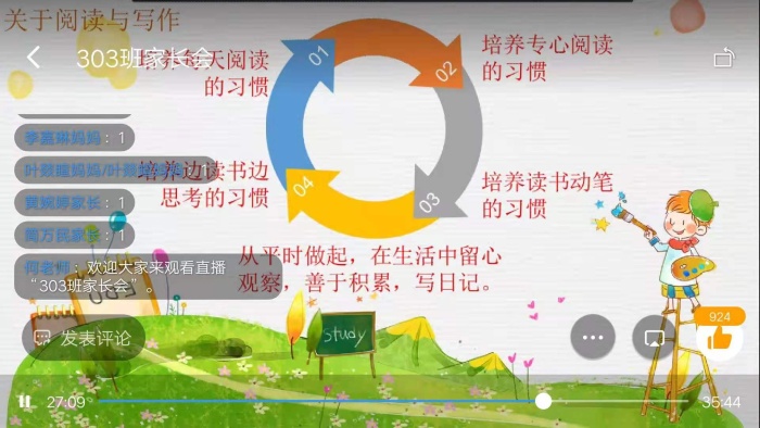 為進(jìn)一步加強(qiáng)家校聯(lián)系,增進(jìn)家長(zhǎng)對(duì)學(xué)校工作的了解,提高家庭教育的觀念,真正達(dá)到家校攜手,共同培養(yǎng)孩子的目的。11月22日,中山市民眾新徽學(xué)校各班利用網(wǎng)絡(luò)直播平臺(tái)開展線上家長(zhǎng)會(huì)。