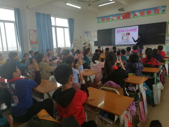 接著,各班級開展了秋冬季常見傳染病預(yù)防主題班會活動。師生一同更詳細(xì)地了解了秋冬季常見傳染病。在學(xué)習(xí)生活中,日常要保持教室內(nèi)空氣流通,避免長期處于密閉空間;要注意個人衛(wèi)生,當(dāng)咳嗽、打噴嚏時,應(yīng)以手帕或上臂遮掩口鼻;要勤修剪指甲、勤洗手,避免病毒殘留等。
