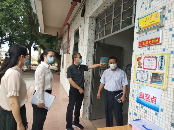 5月9日上午,民眾鎮(zhèn)黨委副書記、鎮(zhèn)長黃聲群、黨委委員劉釗妍、衛(wèi)健局、市場監(jiān)管局、社區(qū)衛(wèi)生服務中心、疾控中心及教育事務指導中心黃海文主任、田萊莉副主任等組成學生返校疫情防控專班來到民眾中心小學,對學生返校疫情防控準備工作進行驗收。在民眾中心小學全體行政陪同下,黃聲群鎮(zhèn)長一行分成兩組,分別對民眾中心小學的疫情防控工作進行了實地考察和防疫準備工作資料查閱,了解學校各項防疫工作是否按照中山市學生返校專班62項要求落實學生返校復學準備工作。之后,專班成員針對各項要求對本次驗收工作進行反饋,并提出相關的整改建議,要求學校盡快落實整改,并做好相關的資料上報。