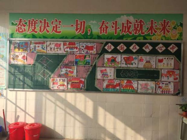 活動二:組織開展少先隊主題黑板報展示活動。全校各班隊將新學(xué)期的“少先隊之家”新教室的文化墻插裝飾一新,各班隊完成以《禮敬國旗》、《習(xí)爺爺?shù)慕虒?dǎo)記心中》為主題的黑板報。