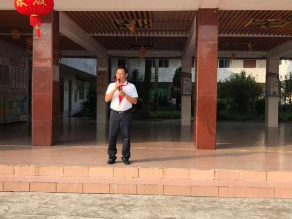 活動四:開展少先隊“微儀式”。10月12日上午8點,新平小學(xué)少先隊組織舉行一次“紅領(lǐng)巾與祖國共成長——紀念中國少年先鋒隊成立70周年暨喜迎少先隊廣東省第七次代表大會”少先隊微儀式統(tǒng)一行動。邀請大隊長周粵同學(xué)進行“習(xí)爺爺教導(dǎo)記心中”學(xué)習(xí)心得分享。全體少先隊員面向隊旗敬一個隊禮,唱一次隊歌,重溫一次誓詞,莊嚴呼號一次;活動應(yīng)邀請學(xué)校少工委主任陸銳勛校長給予全校少先隊員寄語和勉勵。