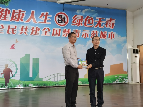 接著,黃聲群鎮(zhèn)長(zhǎng)代表鎮(zhèn)禁毒委員會(huì)向浪網(wǎng)中學(xué)贈(zèng)送《無(wú)毒世界:青少年預(yù)防毒品教育手冊(cè)》,浪網(wǎng)中學(xué)李錫堂校長(zhǎng)代表學(xué)校接受黃鎮(zhèn)長(zhǎng)的捐贈(zèng)。