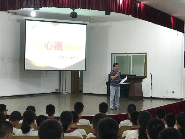 為了幫助同學們緩解焦慮情緒,以平穩(wěn)的心態(tài)面對中考,浪網(wǎng)中學于2019年6月5日,特別邀請中山市家庭教育講師團成員、東區(qū)遠洋學校團委書記楊明立老師為參加中考的全體學生開展考前心理輔導講座。