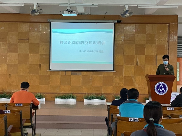 冼健怡校醫(yī)和民眾中學(xué)駐點(diǎn)醫(yī)生針對(duì)當(dāng)前疫情情況,圍繞師生如何做好“防疫”工作,深入淺出地講解了防疫知識(shí),特別是對(duì)口罩的佩戴、辦公室和教室通風(fēng)、正確洗手步驟、發(fā)現(xiàn)疫情如何處置等方面進(jìn)行了詳細(xì)講解。