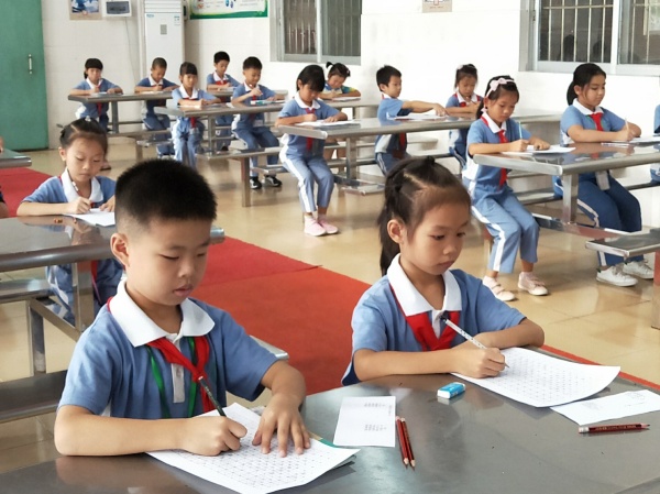 據(jù)了解,在教務(wù)處蔣業(yè)轉(zhuǎn)主任的精心組織下,全校小學(xué)部學(xué)生對此次比賽表現(xiàn)出極大的熱情。在班級初賽的基礎(chǔ)上每班選派3位選手參加,共有132名小學(xué)生參賽。比賽以教材、古文詩詞等內(nèi)容為書寫主題。一、二年級用鉛筆,三至六年級用鋼筆。比賽現(xiàn)場,參賽者們個個滿懷激情,用心書寫每一個筆畫、每一個漢字。同學(xué)們握筆正確,坐姿端正,表現(xiàn)出良好的書寫習(xí)慣,所寫作品筆畫流暢,橫平豎直,結(jié)構(gòu)勻稱,整體美觀,在短短的二十分鐘內(nèi)現(xiàn)場完成自己的作品。評委老師們從寫字姿勢、書寫筆畫筆順和卷面三方面情況綜合評估學(xué)生的寫字水平。在公平、公正的評分之后,各學(xué)段分別評出了一、二、三等獎,并挑選出優(yōu)秀作品在校園內(nèi)進(jìn)行展覽。
