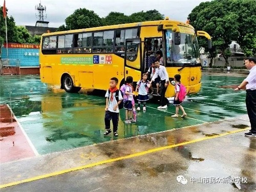 開(kāi)學(xué)第一天清晨,雖然是細(xì)雨迷蒙,民眾新徽學(xué)校的行政及跟車(chē)?yán)蠋?:50就到達(dá)學(xué)校坐上校車(chē)去接所有乘車(chē)學(xué)生返校。校車(chē)到校后,跟車(chē)?yán)蠋熛认萝?chē)后熱情且面帶微笑地向每一位乘車(chē)學(xué)生伸出扶助之手,確保他們安全平穩(wěn)的下車(chē)。學(xué)生都穿著新式校服臉上,洋溢著燦爛的笑容,下車(chē)后,根據(jù)指引教師的指引腳踏黃線邁著整齊劃一的步伐精神抖擻的走進(jìn)自己的教室,邊走邊禮貌的向所見(jiàn)到的老師敬禮熱情問(wèn)好。