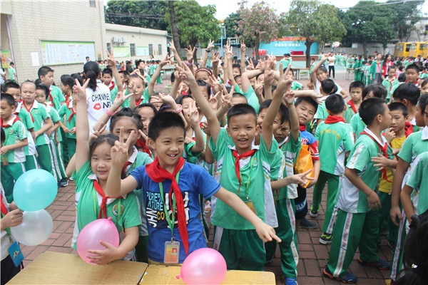 伴著嘹亮的少先隊(duì)隊(duì)歌,莊嚴(yán)的少先大隊(duì)儀式拉開了此次兒童節(jié)慶祝活動的序幕。在兩位小主持人主持的開園儀式中,中山市民眾新徽學(xué)校張小平校長親切寄語全體同學(xué),送上了濃濃的節(jié)日祝福表達(dá)了對莘莘學(xué)子的殷切希望并宣布游園活動的開始。