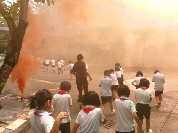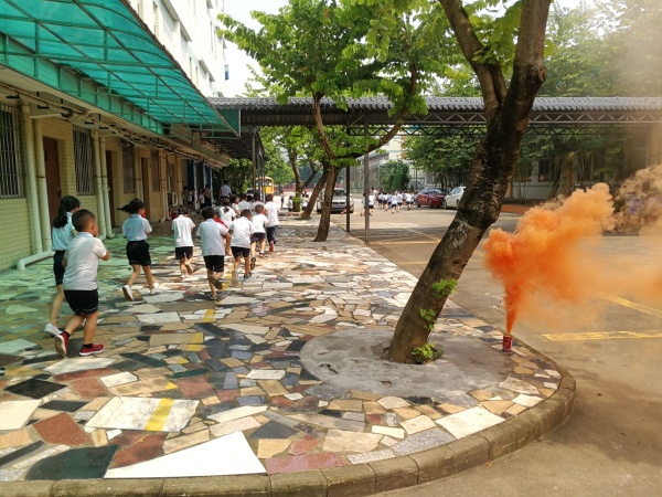 午休結(jié)束后,隨著警報(bào)響起,學(xué)生迅速按照老師的指示,用衣服或者濕毛巾輕捂口鼻,扶墻彎腰前進(jìn),在不到5分鐘的時(shí)間內(nèi),各班的學(xué)生都安全地從生活區(qū)撤離到預(yù)設(shè)的安全集合點(diǎn)。此次演練為保障師生安全,安全處在各通道重要位置均安排有老師指揮,確保學(xué)生是從安全逃生路線有序地撤離。來(lái)到安全集合點(diǎn),各班班干部配合班主任迅速清點(diǎn)本班人數(shù)并排隊(duì)報(bào)告給領(lǐng)導(dǎo)部門,確保不遺漏任何一個(gè)人。
