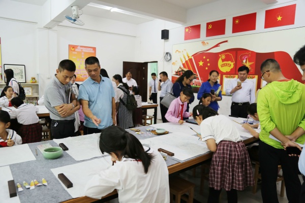 學校行政團隊的帶領下首先參觀了校園、餐廳、宿舍。美麗的校園,整潔的宿舍內(nèi)務讓大家眼前一亮。隨后一同觀摩了學生的陽光大課間活動,大家對德恒學校豐富多彩而井然有序的課間活動給予了充分的肯定。接著大家分組進班觀摩了各學科的展示課,并深入到各個功能室了解手工、國畫、兒童舞蹈、合唱、古箏等第二課堂的開展情況。隨后,與會人員又翻閱了德恒學校各年級、各學科的教案、學生作業(yè)等,更進一步了解了德恒教學常規(guī)管理的細致和認真。