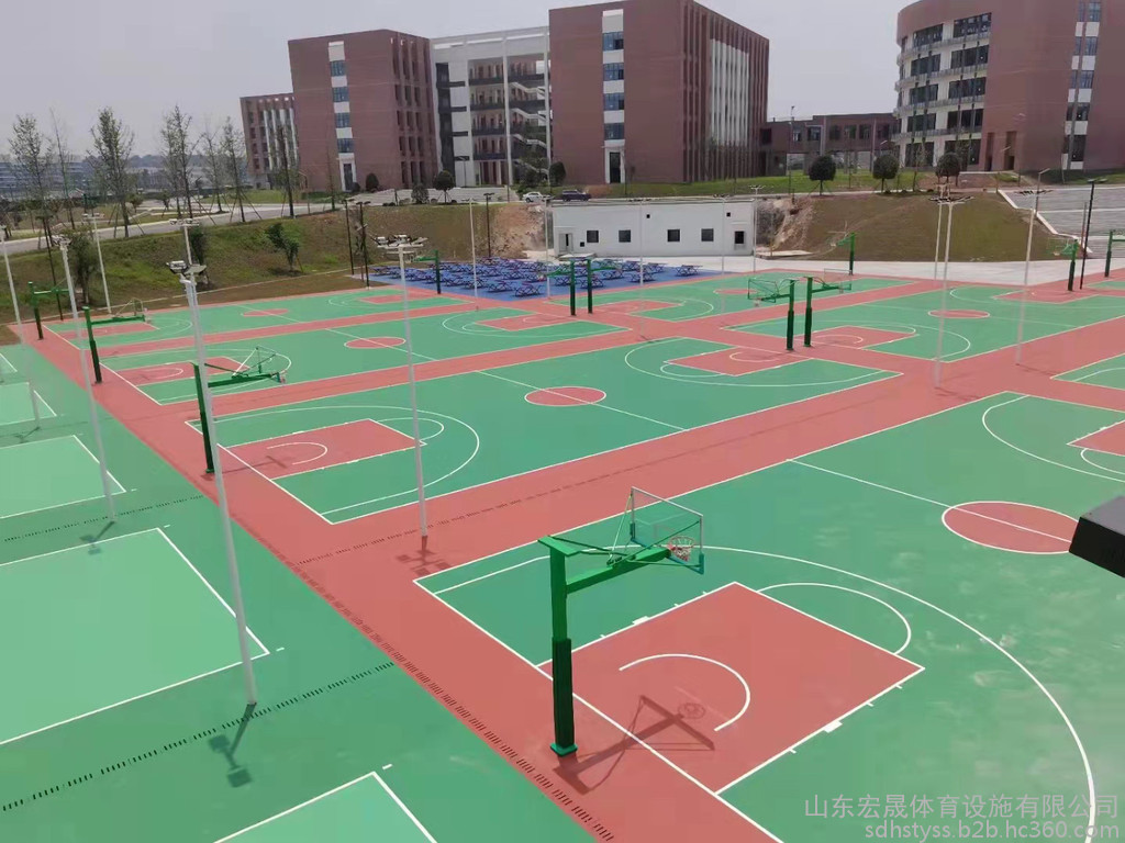 宏晟體育款式定制 硅pu球場(chǎng)、塑膠球場(chǎng)、丙烯酸籃球場(chǎng)、硅pu塑膠球場(chǎng),防水抗滑專業(yè)施工團(tuán)隊(duì)安裝塑膠跑道工程