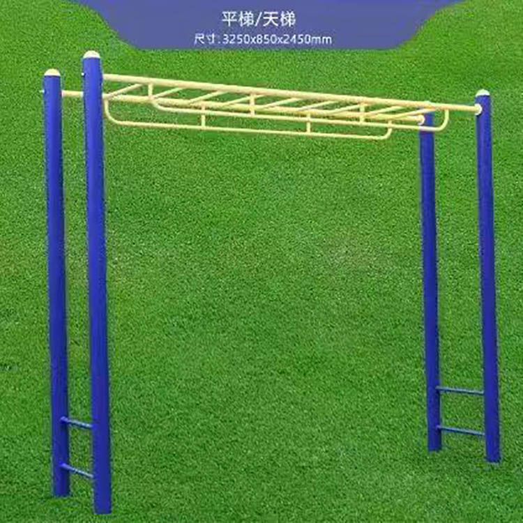 漫步機(jī)、雙人漫步機(jī)、告示牌、橢圓機(jī)、跑步機(jī)、雙人坐凳、三人轉(zhuǎn)腰器、二人轉(zhuǎn)腰器、雙外浪板、平步機(jī)、推揉器、雙人大轉(zhuǎn)輪、腰背按摩器、雙人坐拉、雙人坐推、劃船器、單柱雙杠、引體架、腹肌板、伸腰伸背架、蹺蹺板、立式健騎機(jī)、臂力訓(xùn)練器、上肢牽引器、棋牌桌、四位壓腿器、腿部按摩器、雙杠、單杠、天梯等。