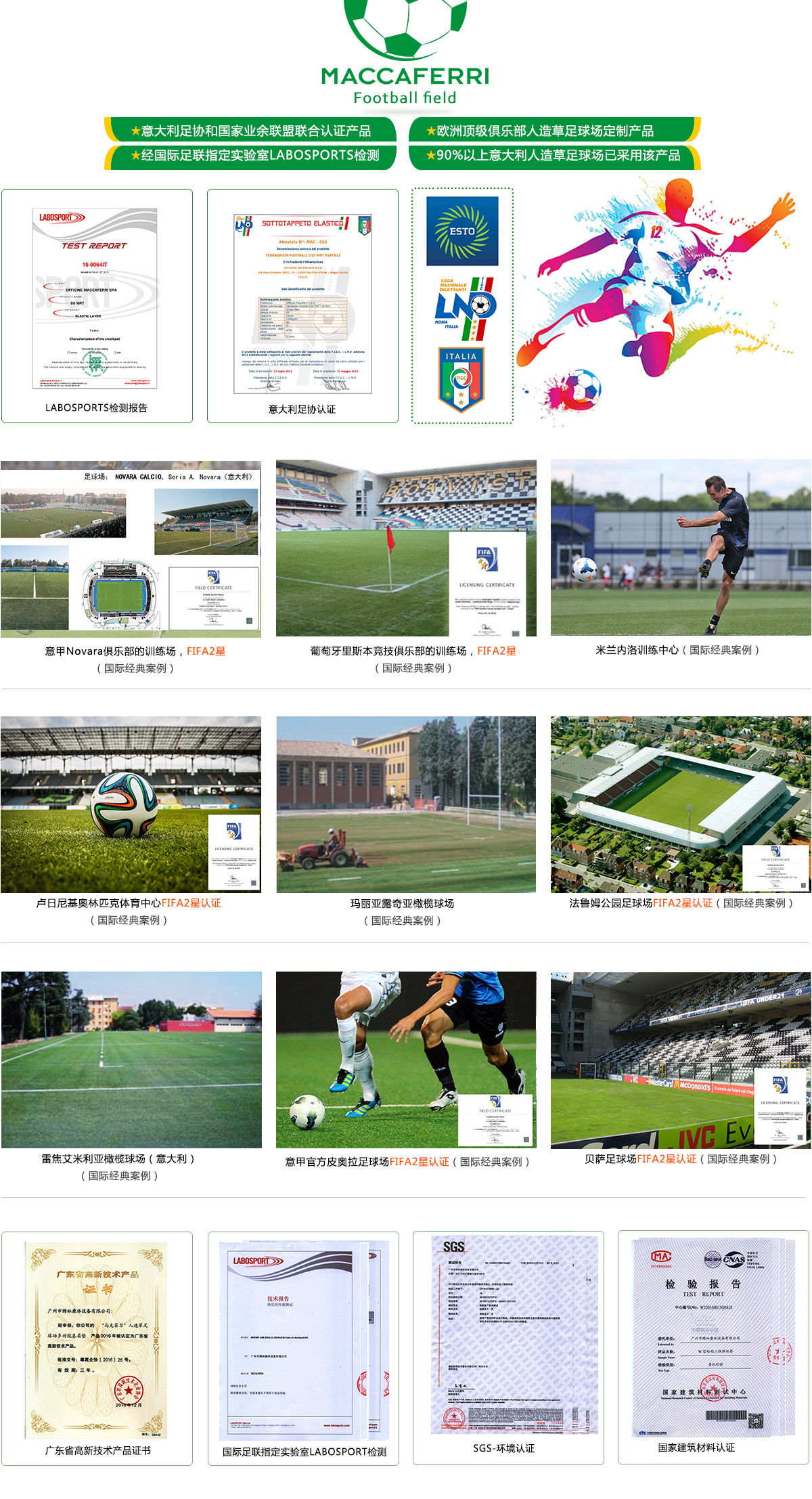 已先后通過國際足聯(lián)(FIFA)、意大利足協(xié)(F.I.G.CLND)和意大利業(yè)余足球聯(lián)盟等機(jī)構(gòu)認(rèn)證。