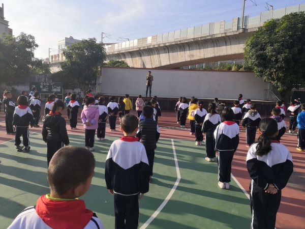 活動二:“憲法晨讀”活動結束之后,8:10分全校師生集合后操場,德育處石寶行主任,再一次給學生普及憲法知識,告訴學生:我們很幸運,因為我們出生在一個法治的國家?!稇椃ā穼σ粋€國家而言,如鎧甲,如標桿;對我們而言,如甘露,如陽光。列舉了我們認真上學、接受教育,是遵守《憲法》,我們保護環(huán)境,節(jié)約資源,是遵守《憲法》,我們學習、踐行社會主義核心價值觀,也是遵守《憲法》,讓學生明白《憲法》就在我們身邊,《憲法》陪伴我們成長。最后號召所有的學生共同努力,學習憲法、遵守憲法,以憲為綱,知法守法,做一名新時代的合格學生!