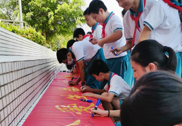 6月23日上午,北臺(tái)小學(xué)全體師生參加了禁毒宣誓及簽名儀式。儀式上,北臺(tái)小學(xué)劉雪花副主任作了發(fā)言,給全校師生提出了“珍愛生命,遠(yuǎn)離毒品”的具體要求,希望全校師生提高思想認(rèn)識(shí),自覺遠(yuǎn)離毒品,要求各班要結(jié)合實(shí)際,組織開展內(nèi)容豐富、形式多樣、學(xué)生喜聞樂見的禁毒宣傳教育活動(dòng),引導(dǎo)學(xué)生增強(qiáng)自我保護(hù)意識(shí),提高抵制毒品的能力,確保學(xué)生不吸毒、校園無毒品。隨后,她帶領(lǐng)全體師生進(jìn)行宣誓,表達(dá)了拒絕毒品的決心。最后,全體師生在寫著“珍愛生命,拒絕毒品”禁毒誓師簽名的條幅上簽名,決心抵制毒品,潔身自愛,絕不沾毒,勇當(dāng)禁毒宣傳的標(biāo)兵。