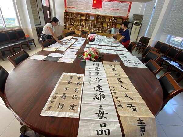 6月20日,全校開展了“無毒青春 健康生活”為主題的書法比賽活動(dòng)。一到六年級(jí)每班三位學(xué)生參加,在規(guī)定時(shí)間內(nèi)書寫禁毒詩一首。比賽現(xiàn)場(chǎng)選手們一個(gè)個(gè)凝神靜氣,將注意力都集中在筆尖,在專注每一筆畫的同時(shí)關(guān)注整首詩的結(jié)構(gòu)和諧。此次書法比賽,以傳統(tǒng)書法為載體,廣泛宣傳禁毒知識(shí),讓他們?cè)趧?chuàng)作和欣賞藝術(shù)作品的同時(shí),提高識(shí)毒、防毒、拒毒的能力,為深入推進(jìn)6·26毒品預(yù)防教育營造良好氛圍。