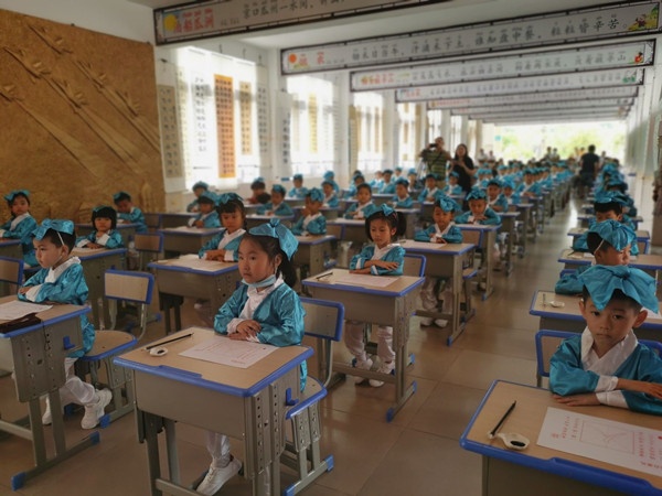 開筆禮,是標(biāo)志少兒開始識字習(xí)禮的一種典禮,是古代讀書人成長過程中的首次大禮,被稱為“人生四大禮”之一。開筆典禮伊始,新生們身著漢服在父母的陪同下就坐,校長吳燕芳作了熱情洋溢的致辭。她先向一年級新生及家長表示最真摯的歡迎和祝賀,殷切希望孩子們可以健康快樂地成長。接著,新生們在禮師的引導(dǎo)下,進(jìn)行“正衣冠”?!巴芍畬W(xué),始于衣冠”新生們一時捋捋頭發(fā),一時拉拉衣角,有的還互相檢查,十分認(rèn)真。