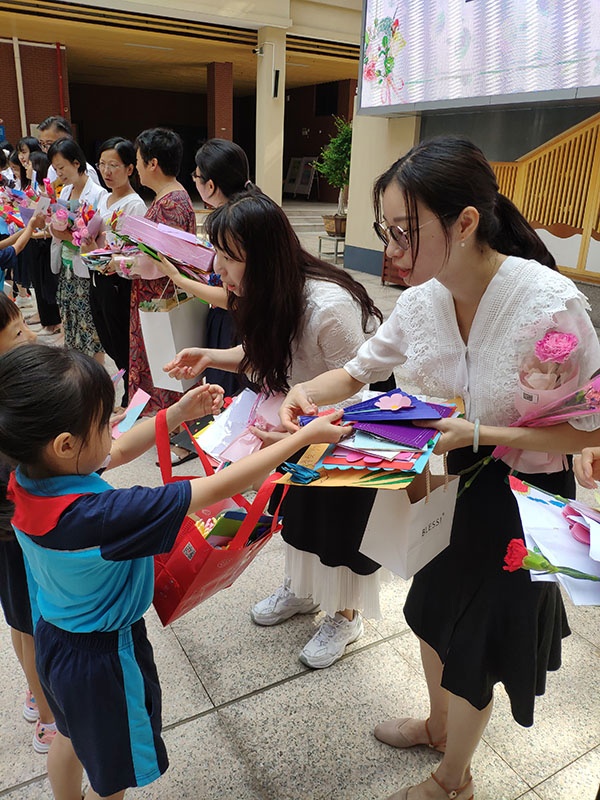 9月10日大課間,全校學(xué)生在教學(xué)樓中庭開展慰問教師活動(dòng)。同學(xué)們列隊(duì)紛紛將自制的慰問賀卡、自創(chuàng)的祝福語送給老師們。這一暖心活動(dòng)充分表達(dá)了同學(xué)們對(duì)老師的真情實(shí)感,對(duì)樹立尊師重教的氛圍起到了積極作用。隨后,學(xué)校還進(jìn)行了優(yōu)秀賀卡展示。