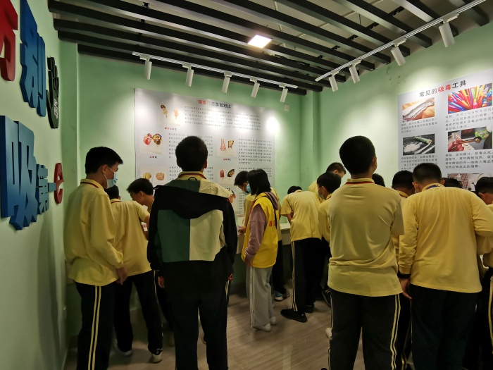 參觀(guān)過(guò)程中,講解員分別從毒情形勢(shì)、毒品樣品展示、禁毒法律法規(guī)、禁毒史實(shí)和打擊毒品違法犯罪成果進(jìn)行了詳細(xì)的講述。面對(duì)著一幅幅圖片資料和實(shí)物展示,同學(xué)們?nèi)轿?、多角度地了解了禁毒歷史和毒情形勢(shì),對(duì)毒品的危害性和禁毒的必要性有了更為全面的認(rèn)識(shí)。除了認(rèn)真聽(tīng)取教育基地工作人員的解說(shuō)、觀(guān)看圖片、實(shí)物、視頻,同學(xué)們還積極參與禁毒知識(shí)搶答,對(duì)毒品的性質(zhì)、種類(lèi)、危害以及南區(qū)近年來(lái)的禁毒成果有了更深的了解與認(rèn)識(shí),進(jìn)一步意識(shí)到保持積極健康的生活方式、提高防毒意識(shí)、增強(qiáng)防毒能力的重要性,尤其對(duì)新型毒品和濫用止咳水給青少年帶來(lái)的危害有了更深的體會(huì)。