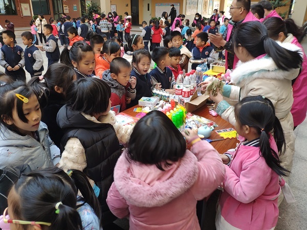 下午2點半,馬嶺小學校園又變成了一個特殊的大賣場,同學們以班級為單位分成了各個小“賣場”,本次所有義賣的物品全部由學生自己提供或家長協(xié)助準備,學生自己擔任愛心大使參加義賣。每個攤位各具特色,各班有自己的攤位名稱、宣傳海報,義賣場上歡笑聲、叫賣聲、討價還價聲,人聲鼎沸,不絕于耳。琳瑯滿目的義賣品吸引著每位同學,有學習用具、兒童玩具、精美圖書、各類美食等,每個攤位都圍滿了同學,他們都忙著挑選自己喜歡的物品。義賣現場愛心涌動,氣氛熱烈,眾多愛心商品被搶購一空,全校師生共同參與的愛心義賣活動將濃濃的愛心傳遞到校園的每個角落?;顒咏Y束后,學校評選出“銷售冠軍”、“最佳創(chuàng)意獎”、“衛(wèi)生模范班級”三個獎項,并對獲獎班級進行表彰。