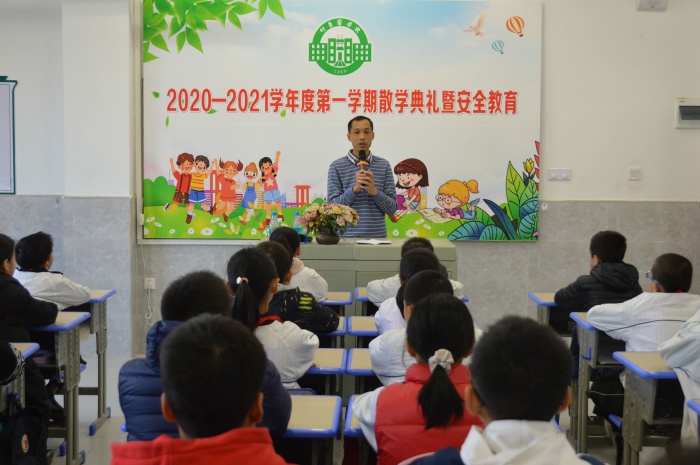 一路歡歌,一路笑語;一段征程,一份收獲。緊張而匆忙的秋季學(xué)期在不知不覺間悄然而逝,在全校師生的共同努力下,本學(xué)期的教育教學(xué)工作圓滿完成。為全面總結(jié)一學(xué)期來同學(xué)們在校的成長與發(fā)展,樹立典型,表彰先進,2021年1月15日上午,南區(qū)竹秀園中心小學(xué)舉行2020學(xué)年度秋季學(xué)期散學(xué)典禮暨安全教育。由于疫情的關(guān)系,此次散學(xué)典禮安排各班在教室進行。