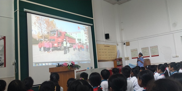 首先,授課老師給學(xué)生們觀看了一則交通安全短片。在短片中,同學(xué)們認識到日常生活中常常出現(xiàn)的交通安全問題,一幕幕驚人的片段都吸引著同學(xué)們的目光,引起了在座同學(xué)的思考。接著,老師為同學(xué)呈現(xiàn)了一組數(shù)據(jù):在中國每90秒就有一名兒童在交通事故中死亡,主要原因有兩個,第一是有小朋友突然出現(xiàn)到機動車道,第二是小朋友從車前或車后突然竄出來,讓司機防不勝防。因此,老師提醒學(xué)生們一定要遠離車輛的盲區(qū),尤其是大型貨車。
