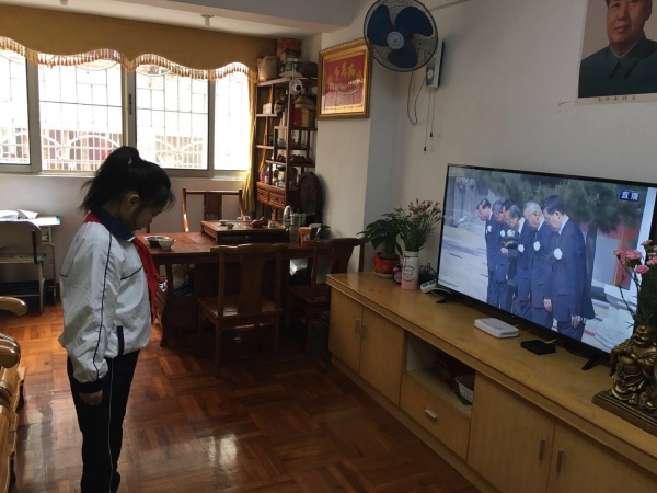 4月4日上午10點整,竹秀園中心小學(xué)全體行政人員及共產(chǎn)黨黨員站立操場,現(xiàn)場氛圍嚴(yán)肅而莊重。隨著國歌的響起,五星紅旗緩緩升起,隨后下半旗。全體人員默哀三分鐘,整個操場氣氛凝重,整個校園一片肅靜。孩子們在家身穿校服、少先隊員佩戴紅領(lǐng)巾,心懷敬意志哀。