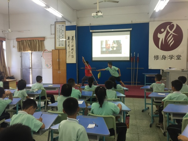 據(jù)悉,馬氏槍法與中山良都地區(qū)的淵源,則要回溯至南宋工部侍郎、邑人馬南寶。馬家槍在宋末保家御敵盡逞英姿,于是良都馬氏一脈保留了傳承槍法的傳統(tǒng),這份保家衛(wèi)國(guó)的氣概,也順隨武學(xué)的言傳身教,印刻在每一代馬氏子孫心中。及至馬演南的爺爺馬儀勝,年過(guò)不惑的他曾提攜鋼槍北上戰(zhàn)場(chǎng),抗擊入侵中華的八國(guó)聯(lián)軍。馬儀勝戰(zhàn)后返回廣東,又將槍法授予子孫,馬演南對(duì)家傳武學(xué)又頗有心得,在上世紀(jì)60年代成為中山市武術(shù)協(xié)會(huì)創(chuàng)始人之際,悉心整理了先祖流傳的槍法套路,并根據(jù)當(dāng)代武術(shù)發(fā)展的趨勢(shì),加以改良延伸,于是有了今天這套威風(fēng)凜凜的展示套路。與此同時(shí),通過(guò)視頻,孩子們更加直接、全面的目睹了馬家槍的風(fēng)采。