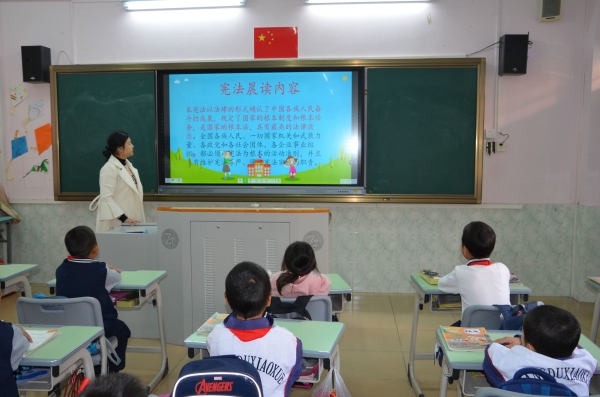 12月4日是第六個(gè)“國(guó)家憲法日”,良都小學(xué)各班班利用早上第一節(jié)課進(jìn)行“憲法晨讀”活動(dòng)。各班主任帶領(lǐng)學(xué)生朗讀憲法內(nèi)容,除此之外,老師們還根據(jù)小學(xué)生的年齡和心理特征,結(jié)合涉及未成年人的典型案例,以通俗易懂的語(yǔ)言,采取以案說(shuō)法的方式,深入淺出地闡釋了什么是憲法、為什么要學(xué)憲法和憲法如何滲透到生活的方方面面。每一個(gè)小案例都讓學(xué)生深受啟發(fā),引導(dǎo)同學(xué)們?cè)谄綍r(shí)的生活中從小事情開始學(xué)習(xí)法律,遵守法律,用法律武器維護(hù)自身的合法權(quán)益。