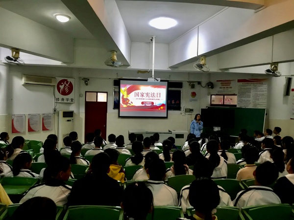 2019年12月4日,是“國家憲法日”,為了引導(dǎo)中學(xué)生弘揚(yáng)法治精神、普及憲法法律知識(shí),中山市良都中學(xué)在校園內(nèi)開展了以“弘揚(yáng)憲法精神,厚植愛國情懷”為主題的“12·4憲法宣傳周”系列活動(dòng)。