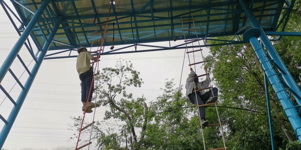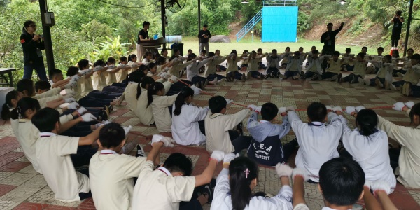 參觀完中山市革命史跡陳列館,同學(xué)們就前往中山市綠色戶外運(yùn)動(dòng)拓展訓(xùn)練基地,參加拓展訓(xùn)練營的活動(dòng)。在拓展訓(xùn)練營里,教官們?yōu)橥瑢W(xué)們精心設(shè)計(jì)了豐富多彩的訓(xùn)練拓展活動(dòng),包括有集體圓形扯大繩、爬繩梯、叢林野戰(zhàn)等等。在協(xié)作互助、緊張刺激、或?qū)嵒蛱摰挠螒蝮w驗(yàn)中,同學(xué)們收獲了成長的幸福和喜悅。