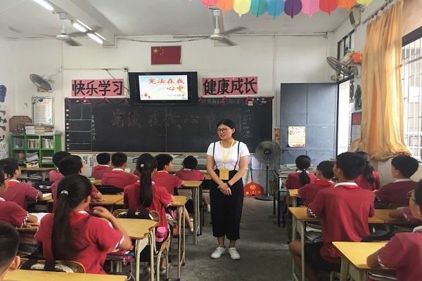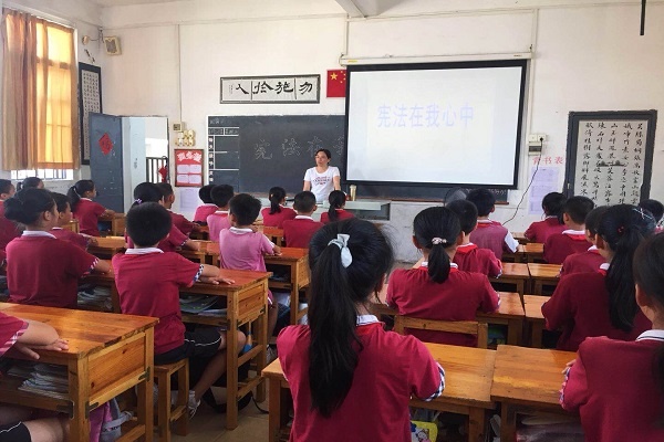 恒美學(xué)校各班利用班隊課的時間,選擇憲法序言及正文中的部分章節(jié)、條款,組織學(xué)生集體朗讀、學(xué)習(xí)。隨后,各班主任老師結(jié)合視頻、圖片、實例向?qū)W生展開教育,讓學(xué)生知道憲法的基本知識。例如憲法在所有法律中的地位、國家憲法日的時間、憲法規(guī)定人民享有的權(quán)利等知識。同時讓學(xué)生增強憲法意識,認(rèn)真學(xué)習(xí)憲法有關(guān)知識,明確憲法的有關(guān)規(guī)定,知道要與違反憲法的現(xiàn)象做斗爭,以實際行動維護(hù)憲法的尊嚴(yán)。
