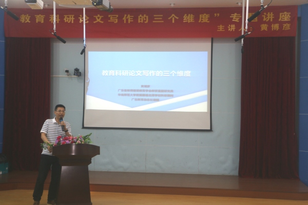 為更好地總結教育教學研究成果,提高一線教師的科研能力,2019年4月29日,由對甫小學主辦的“教育科研論文寫作的三個維度”專題講座在五樓錄播室舉行。本次講座有幸邀請到了廣東省教師繼續(xù)教育學會教研室副研究員、華南師范大學附屬順德北滘?qū)W??蒲蓄檰?、廣東教育雜志社編輯黃博彥老師為主講人。對甫小學中青年教師、黃圃鎮(zhèn)學校部分青年教師參加了本次講座。