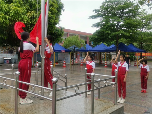 聽著升旗手整齊的踏步聲,隨著洪亮的國歌伴奏,石軍小學(xué)全體師生莊嚴(yán)肅穆,注視著五星紅旗緩緩升起,唱起國歌,響遍校園。的確,就是因?yàn)橛凶鎳庞写藭r(shí)此刻平和、朝氣的校園。