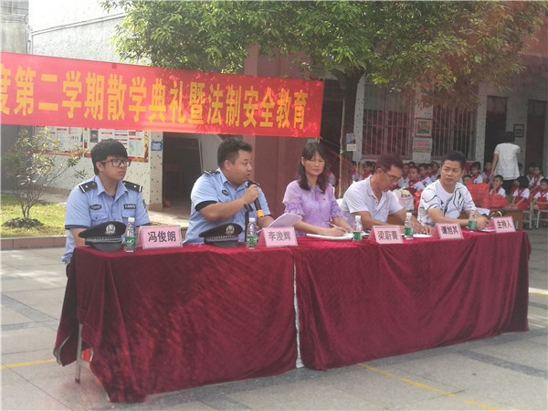 升旗儀式過后,首先由馬新派出所的李浚輝警官給全校師生開展暑假法制安全教育的講座。李警官提醒大家在假期中要注意安全,懂得保護(hù)自己。他重點(diǎn)強(qiáng)調(diào)了暑假期間預(yù)防溺水的注意事項(xiàng),李警官還從交通安全、居家安全(含防火)、娛樂安全(含上網(wǎng))、旅游安全、飲食衛(wèi)生、傳染病防控等等方面進(jìn)行了生動(dòng)、詳細(xì)的講解,為學(xué)生能安全、文明、健康度過暑假予以指導(dǎo)。